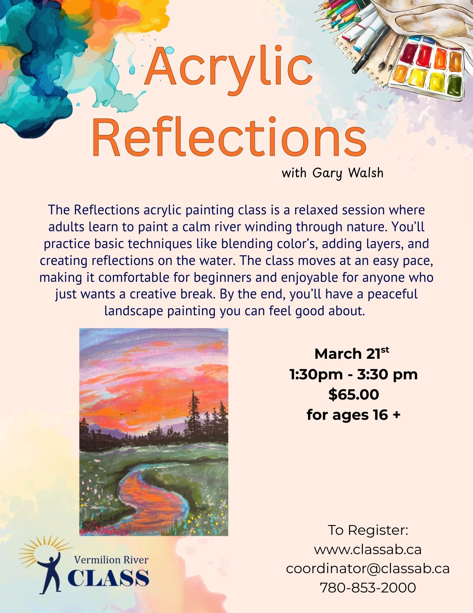 Registrations can be dropped off at the CLASS office, mailed to 5036 49 Ave. Vermilion, AB T9X 1B7 or emailed to adm@classab.ca. Payments can be made by cheque, cash or e-transferred to payments@classab.ca